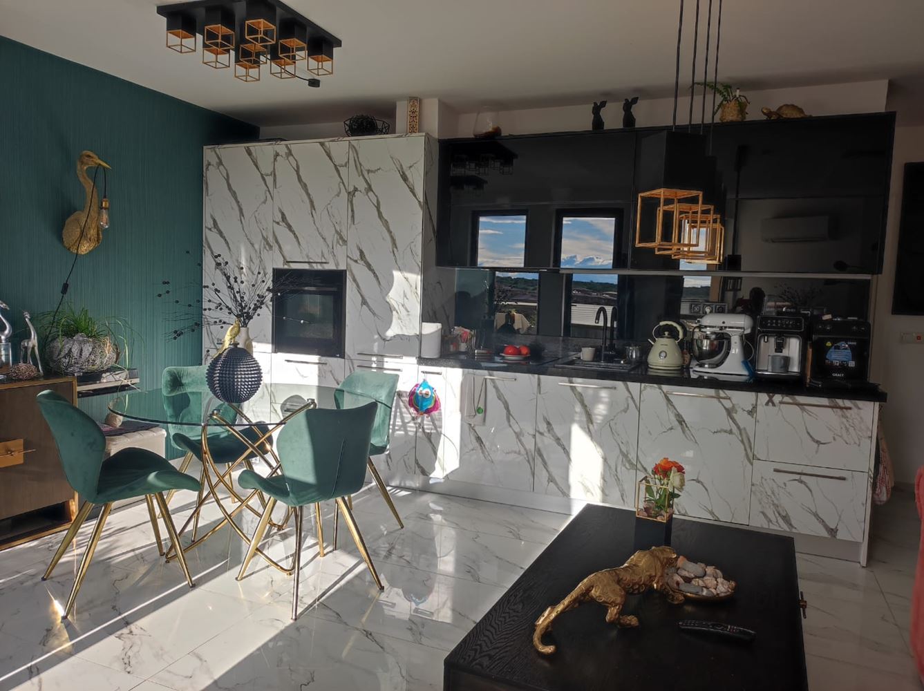 Die Wohnung verfügt über eine funktionale und großzügige Raumaufteilung mit einem hellen Wohnbereich mit Küchenzeile, zwei separaten Schlafzimmern, zwei Badezimmern mit WC sowie einer großen Panoramaterrasse mit wunderschönem Meerblick. Großzügigkeit und Tageslicht schaffen ein Gefühl von Weite und Behaglichkeit, während die Terrasse perfekt für Entspannung, Morgenkaffee oder Abende mit Meeresbrise und Blick auf die Bucht geeignet ist.