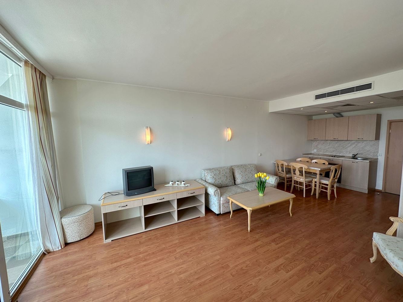 Zum Verkauf steht eine Zwei-Zimmer-Wohnung im Herzen des berühmten Sonnenstrands! Mit einer Gesamtfläche von 84 m² bietet diese Wohnung im siebten Stock eine einzigartige Kombination aus Komfort und Luxus in einem der beliebtesten Badeorte Bulgariens. Die Raumaufteilung umfasst einen hellen Wohnbereich, ein großzügiges Schlafzimmer sowie ein modern ausgestattetes Badezimmer. Vom gemütlichen Balkon eröffnet sich ein malerischer Blick auf das Meer – ideal für den Morgenkaffee oder den Aperitif am Abend.