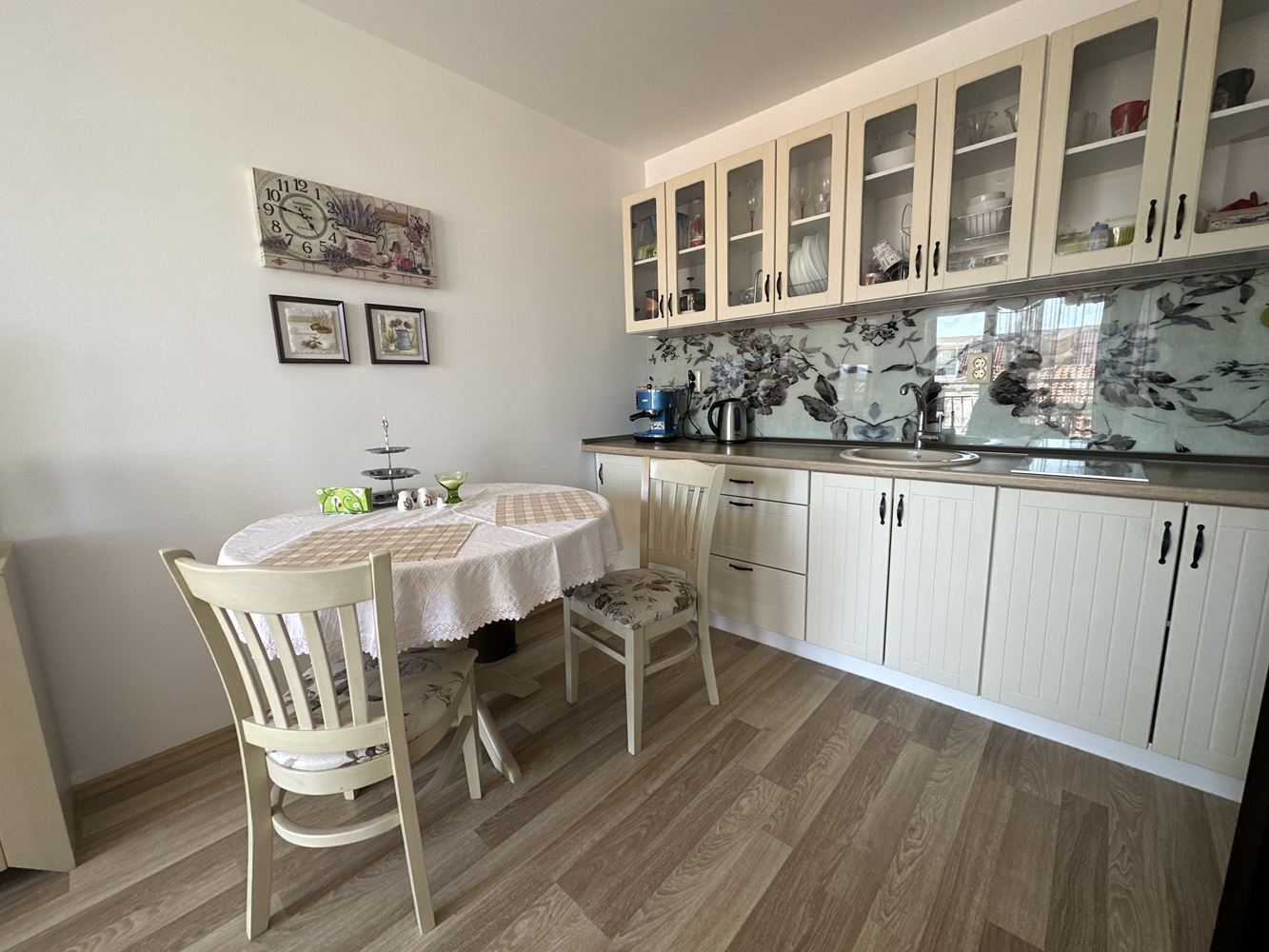 Zum Verkauf steht eine Drei-Zimmer-Wohnung im prestigeträchtigen Ferienort Sveti Vlas, die Komfort und Annehmlichkeiten für einen idealen Sommerurlaub oder ganzjähriges Wohnen bietet. Die Wohnung befindet sich im vierten Stock eines modernen Komplexes mit Aufzug und hat eine Gesamtfläche von 75 m². Sie wird Sie mit ihrem funktionalen Design und den hellen Innenräumen begeistern. Die Wohnung besteht aus drei geräumigen Zimmern, darunter zwei gemütliche Schlafzimmer und ein stilvoll eingerichtetes Wohnzimmer, das ideal für Gästeempfang und Familienzusammenkünfte ist. Der Balkon bietet hervorragende Möglichkeiten zum Entspannen mit einer Tasse Kaffee oder einem Buch, während Sie die frische Meeresluft genießen.