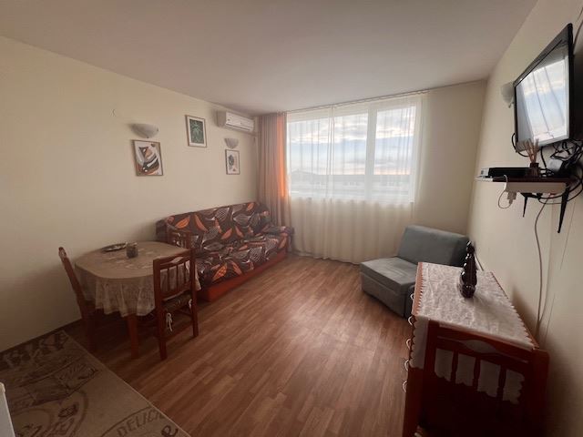 Dieses Studio mit Meerblick im Badeort Ravda ist ein gemütlicher Ort für diejenigen, die die schönen Strände und die herrliche Aussicht auf das Meer schätzen. Es befindet sich im fünften Stock eines fünfstöckigen Gebäudes und bietet eine Fläche von 45 m², was es zu einem idealen Ort für Entspannung und Rückzug macht. Beim Betreten des Studios begrüßt Sie das geräumige Wohnzimmer, in dem die Küchen- und Wohnbereiche geschickt kombiniert sind. Das Badezimmer mit WC bietet alle notwendigen Annehmlichkeiten, während der verglaste Balkon zum idealen Ort für Entspannung und Genuss der Aussicht auf das weite Schwarze Meer wird. Das Studio wird voll möbliert angeboten, was es bereit für ein komfortables Leben macht. Die Möbel, das stilvolle Interieur und die Liebe zum Detail schaffen eine Atmosphäre von Gemütlichkeit und Eleganz. Ravda, mit seinen wunderschönen Stränden und der warmen Atmosphäre des Badeorts, bietet den idealen Ort für einen Urlaub. Dieses Studio wird zur idealen Wahl für diejenigen, die nicht nur eine Unterkunft suchen, sondern auch einen Ort, um die Schönheit des Meeres direkt von ihrem eigenen Zuhause aus zu genießen.
