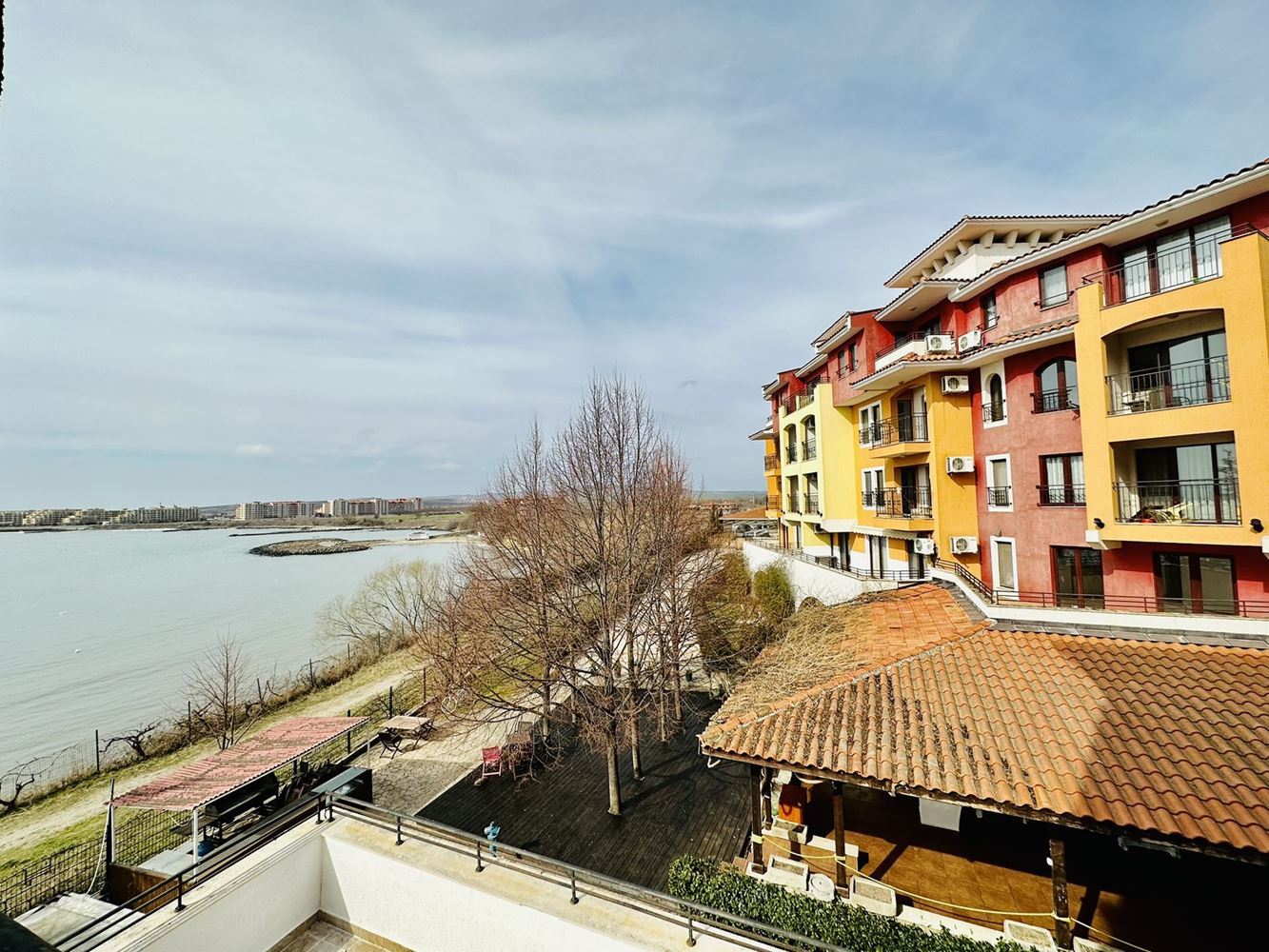Wir bieten zum Verkauf eine geräumige 2-Zimmer-Wohnung mit direktem Meerblick und großem Balkon im Marina Cape Komplex in Aheloy an.