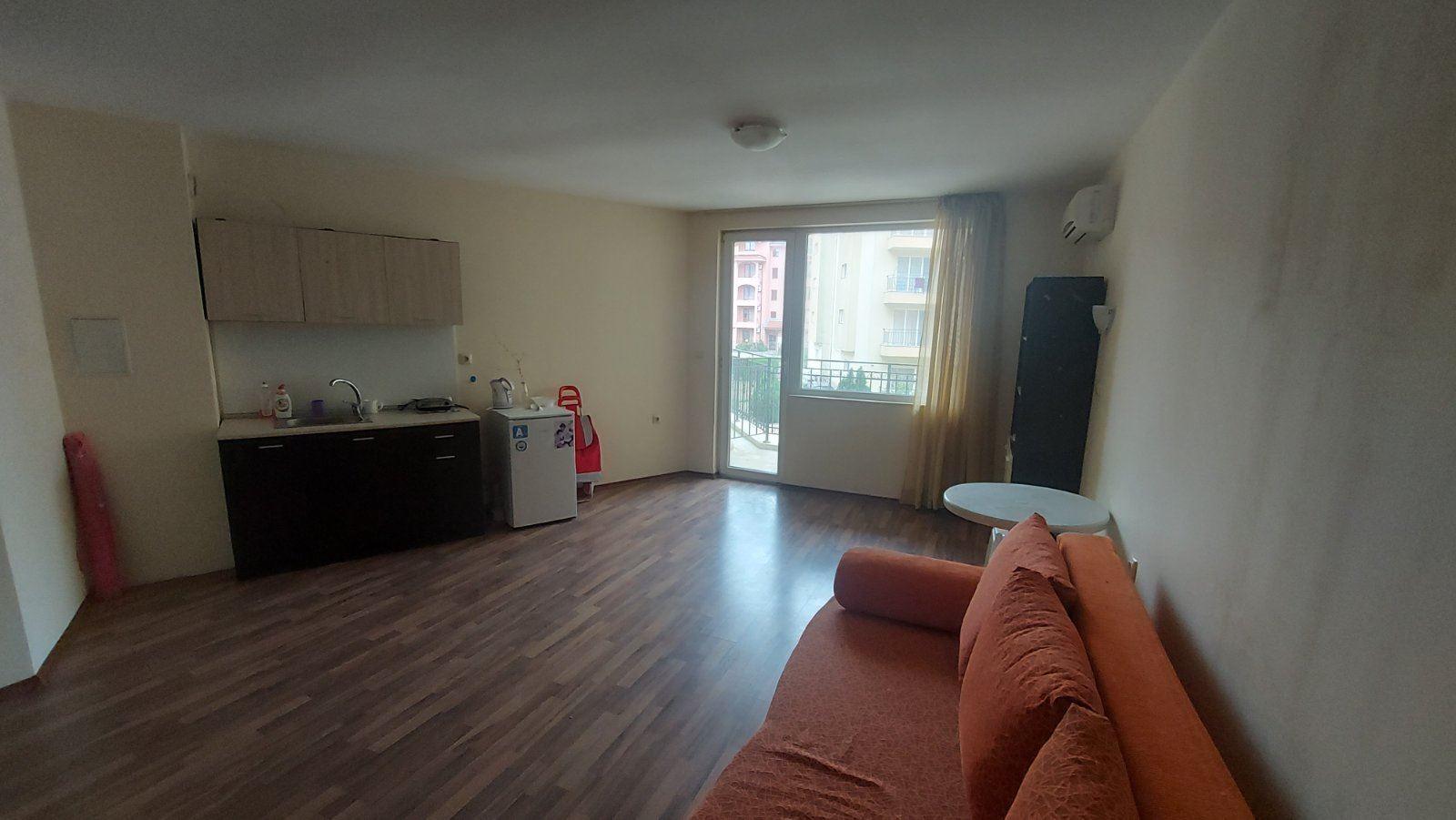 Zum Verkauf steht ein gemütliches Studio mit einer Gesamtfläche von 43 m², gelegen im zweiten Stock eines Gebäudes mit Aufzug in Sonnenstrand. Die Wohnung ist komplett möbliert und ausgestattet – bezugsfertig sofort nach dem Kauf, ohne zusätzliche Investitionen. Die funktionale Aufteilung sorgt für Komfort auf kompakter Fläche: ein geräumiger Wohnbereich mit Schlaf- und Küchenbereich, Zugang zu einem praktischen Balkon – ideal für Morgenkaffee oder abendliche Entspannung – sowie ein separates Bad mit Toilette. Dank der guten Raumaufteilung und des natürlichen Lichts eignet sich das Apartment sowohl für die Feriennutzung als auch für das ganzjährige Wohnen.