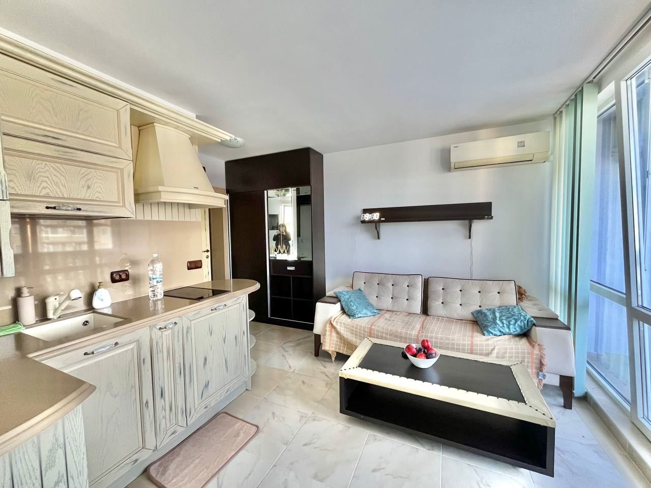 Wir präsentieren Ihnen eine äußerst attraktive Ein-Schlafzimmer-Wohnung, nur 100 Meter vom Strand entfernt, in einer der schönsten, ruhigsten und beliebtesten Gegenden von Ravda. Die Immobilie vereint eine hervorragende Lage, einen panoramischen Meerblick und eine niedrige Instandhaltungsgebühr, was sie sowohl für Eigennutzung als auch als Investition ideal macht.