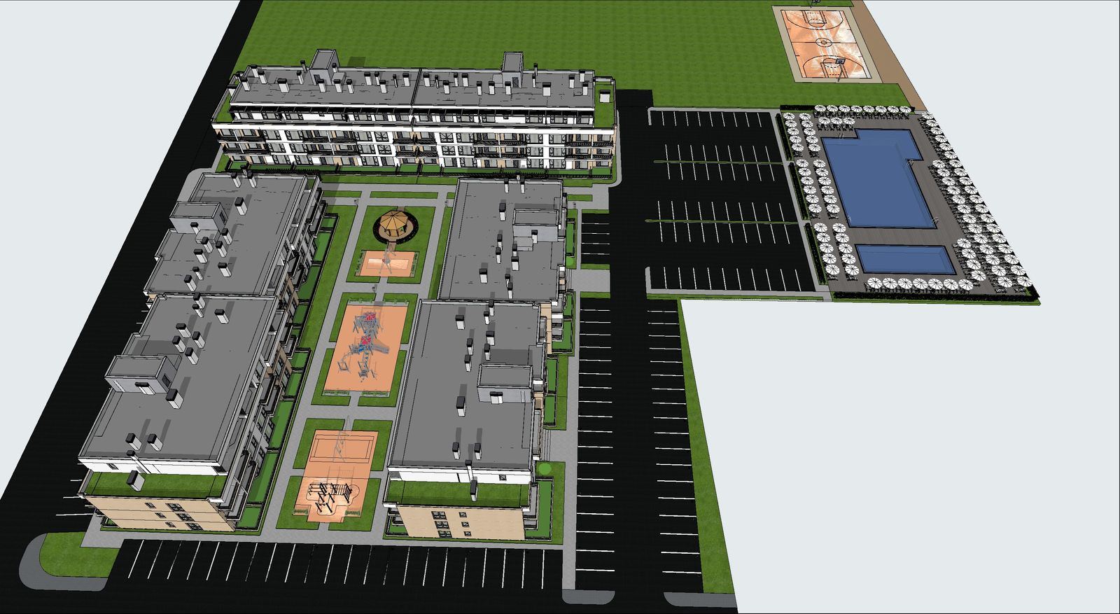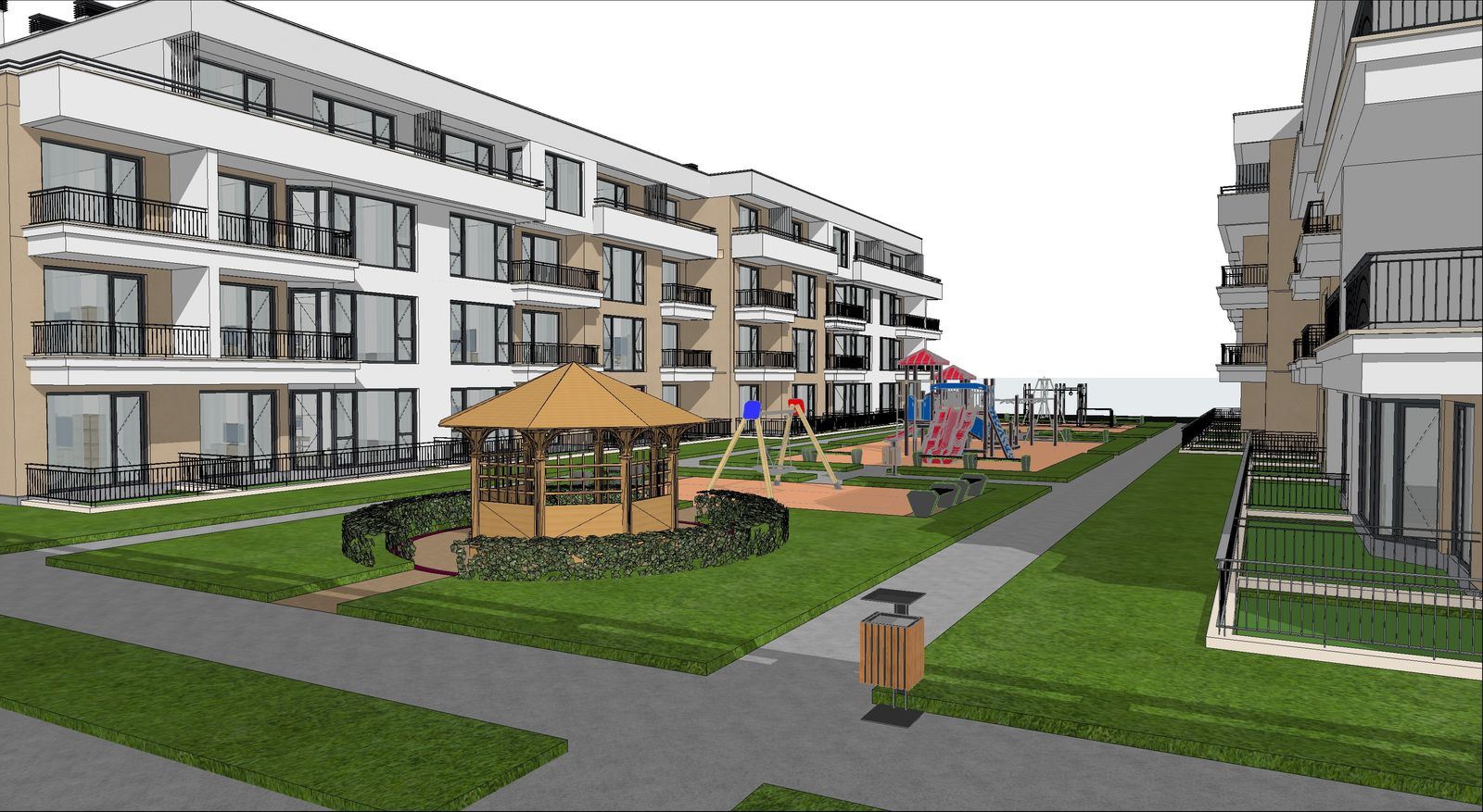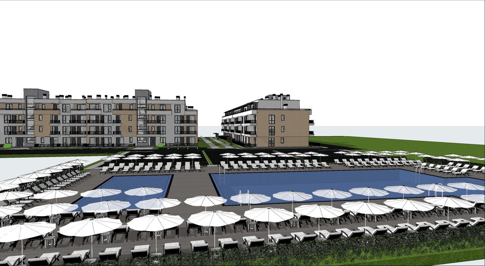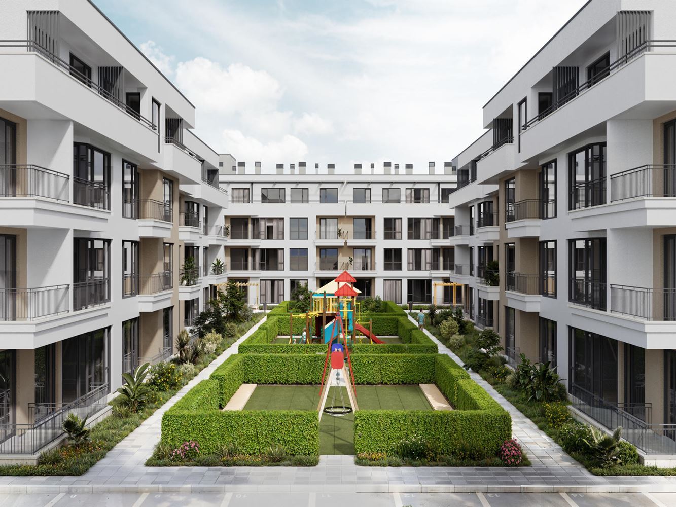 Der Komplex bietet moderne und vielfältige Annehmlichkeiten, die für einen aktiven und entspannten Lebensstil konzipiert sind. Den Bewohnern stehen zwei neue Pools, ein Kinderspielplatz, Pavillons und Grünflächen zur Entspannung zur Verfügung, die Freizeit und Unterhaltung für alle Altersgruppen verbinden. Außerdem gibt es vier Ladestationen für Elektrofahrzeuge und 158 Tiefgaragenstellplätze, wobei die Wartungsgebühr einen Tiefgaragenstellplatz pro Wohnung umfasst, was Komfort und Sicherheit für die Fahrzeuge der Bewohner gewährleistet.