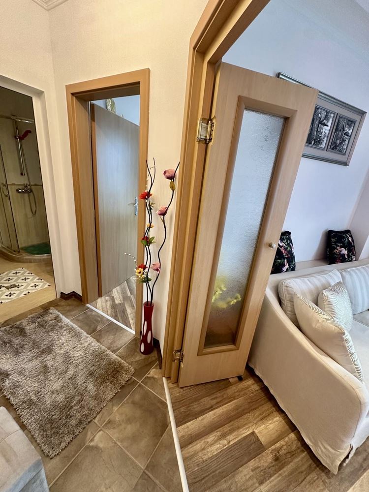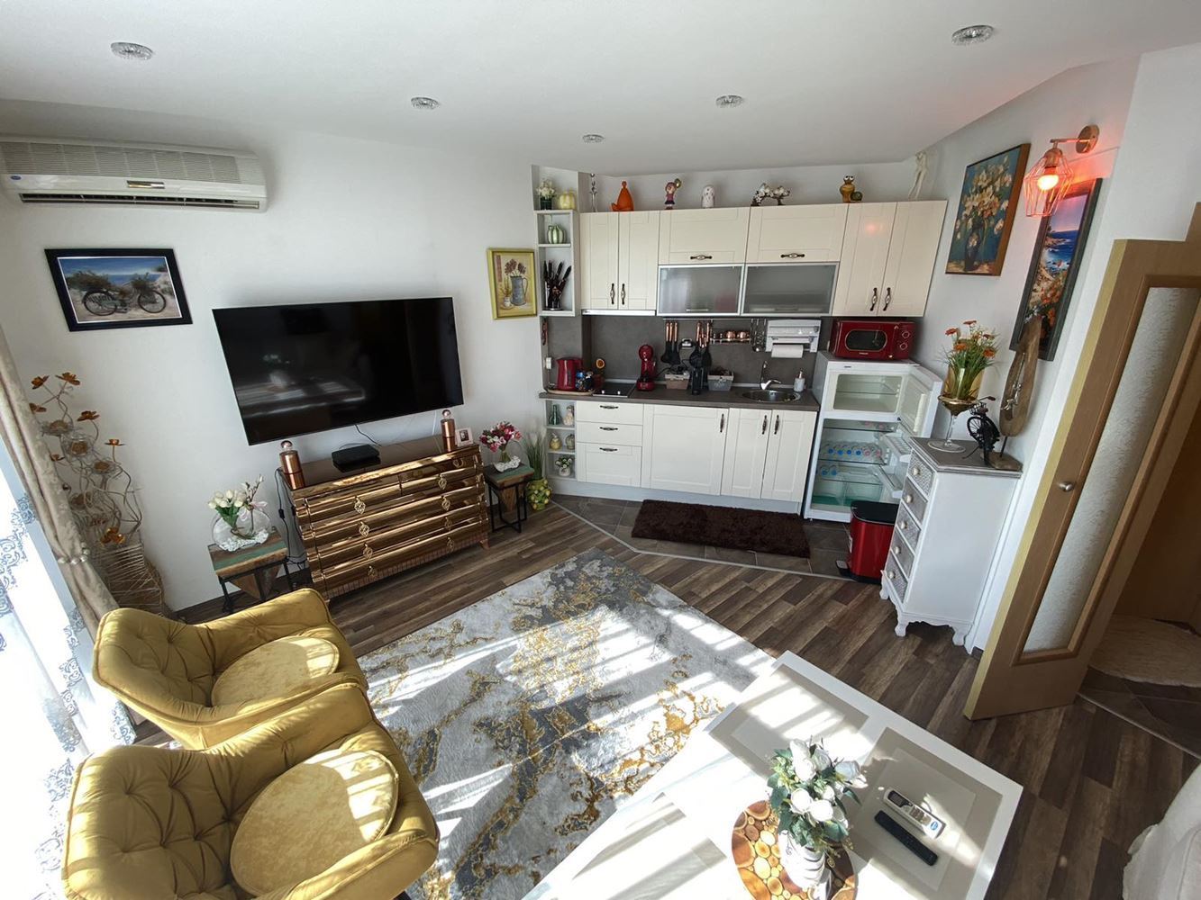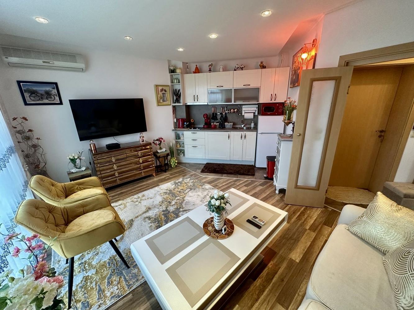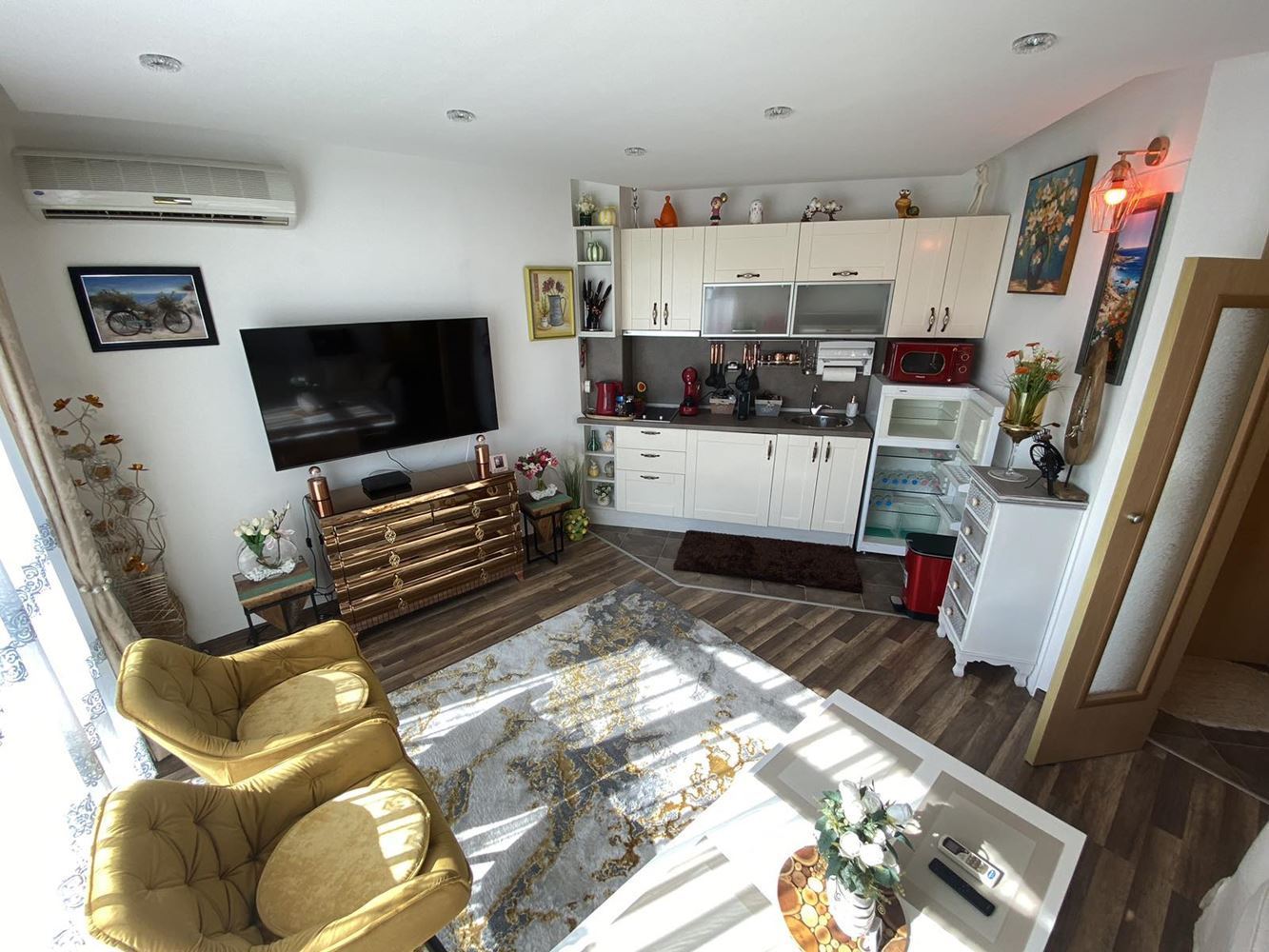 Die Wohnung ist stilvoll gestaltet und mit brandneuen Möbeln komplett ausgestattet, sodass sie sofort bezugsfertig ist. Der großzügige Flur führt in eine helle Küche mit Essbereich, die eine gemütliche Atmosphäre für Familienabende oder gesellige Treffen mit Freunden schafft. Das separate Schlafzimmer bietet Ruhe und Entspannung, während das moderne Badezimmer mit WC mit viel Liebe zum Detail ausgestattet ist. Das Highlight der Immobilie ist die Terrasse mit direktem Meerblick – Ihr zukünftiger Lieblingsplatz für den Morgenkaffee oder romantische Abende beim Sonnenuntergang.