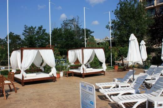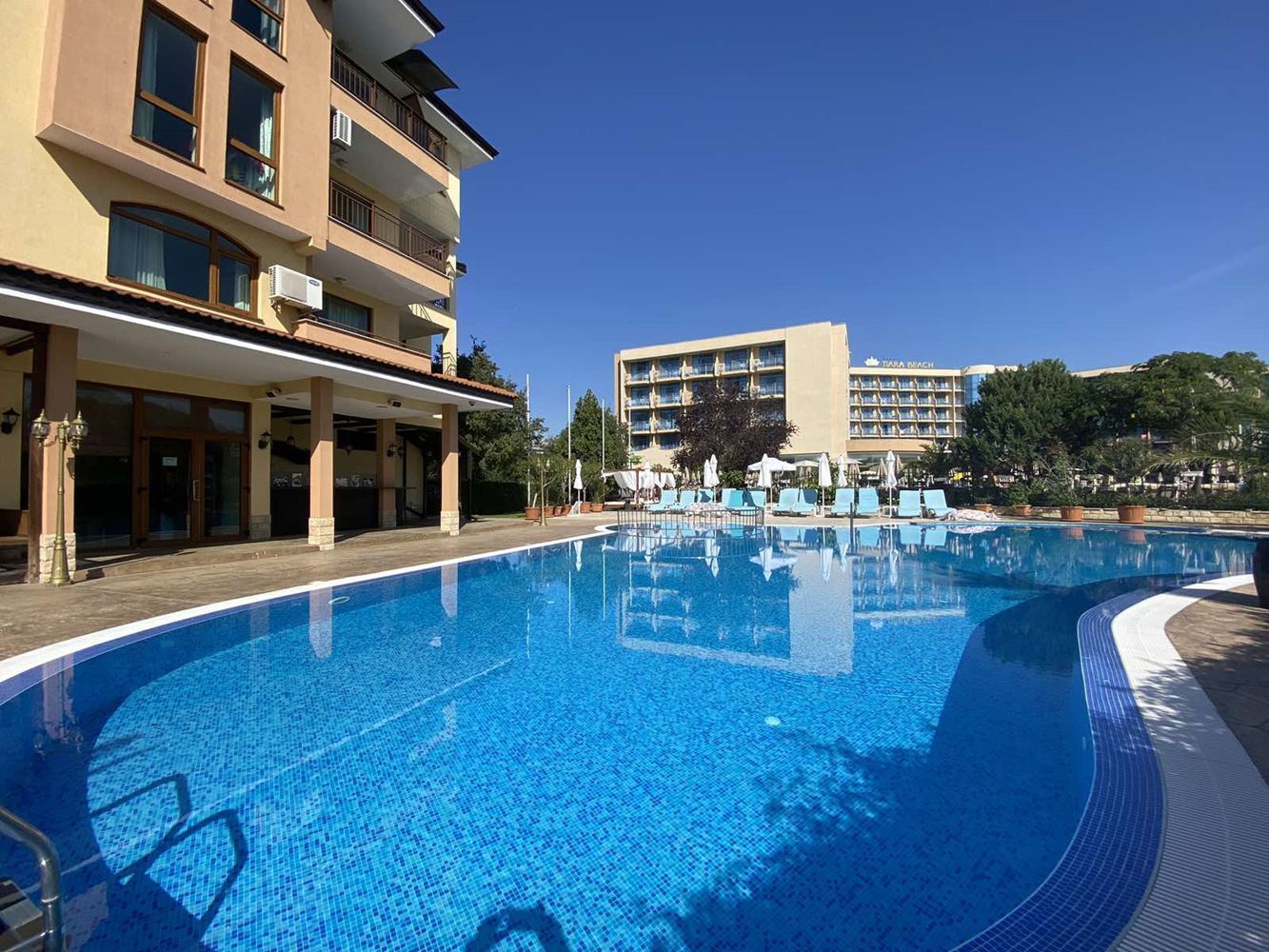 Die Wohnanlage ist eine wahre Oase der Erholung und Bequemlichkeit. Den Eigentümern und Gästen stehen ein großer Swimmingpool mit Liegestühlen, eine Lobbybar und Rezeption für Komfort und Sicherheit, verschiedene Geschäfte für den täglichen Bedarf sowie Parkplätze zur Verfügung. Die gepflegten Spazierwege im Innenhof verstärken das Gefühl von Ruhe und Grün. Die Lage ist zweifellos einer der größten Vorteile dieser Immobilie – nur wenige Schritte vom Strand entfernt und im Herzen des lebendigen Ferienortes. Alles, was Sie für einen gelungenen Aufenthalt brauchen, ist fußläufig erreichbar: Geschäfte, Restaurants, Bars, Casinos, Nachtclubs, Souvenirläden, medizinisches Zentrum, öffentlicher Nahverkehr, Konditoreien, Cafés, Märkte, Banken, Wechselstuben, Post und Schönheitssalons.
