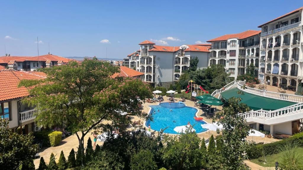 Wir bieten zum Verkauf eine gemütliche und gut organisierte Zwei-Zimmer-Wohnung, gelegen im zweiten Stock in einer gepflegten Wohnanlage mit vielfältigen Annehmlichkeiten und ruhiger Atmosphäre. Die Immobilie hat eine Fläche von 65 m² und zeichnet sich durch eine funktionale Raumaufteilung aus, die Komfort für ganzjähriges Wohnen, Urlaubsaufenthalte oder Investitionszwecke bietet.