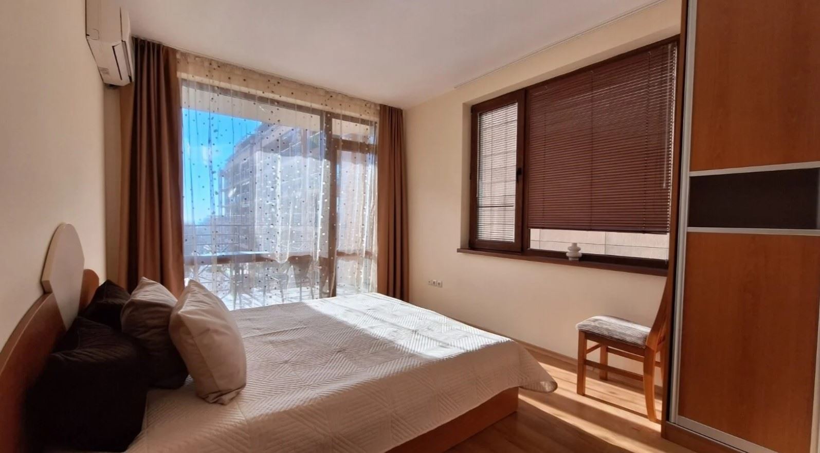 Wir präsentieren eine geräumige Wohnung mit einer Gesamtfläche von 70 m², gelegen im zweiten Stock eines fünfstöckigen Gebäudes, Teil eines geschlossenen Komplexes im prestigeträchtigen Ferienort Sveti Vlas. Die Wohnung bietet eine praktische und funktionale Raumaufteilung, einschließlich Eingangshalle, Wohnzimmer mit Küchenzeile, separates Schlafzimmer, Badezimmer und Terrasse mit beeindruckendem Meerblick. Die Immobilie ist vollständig möbliert mit Möbeln und Geräten und bereit für sofortigen Einzug oder Vermietung.