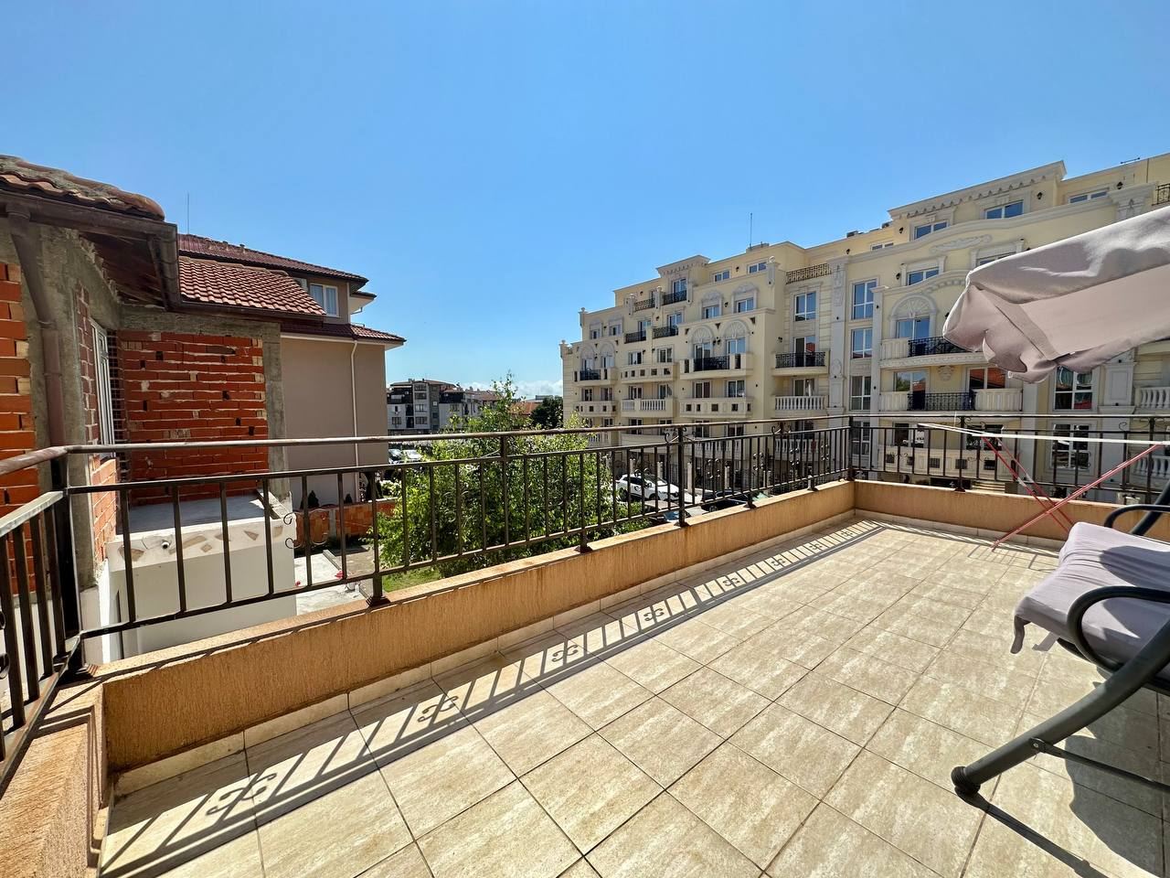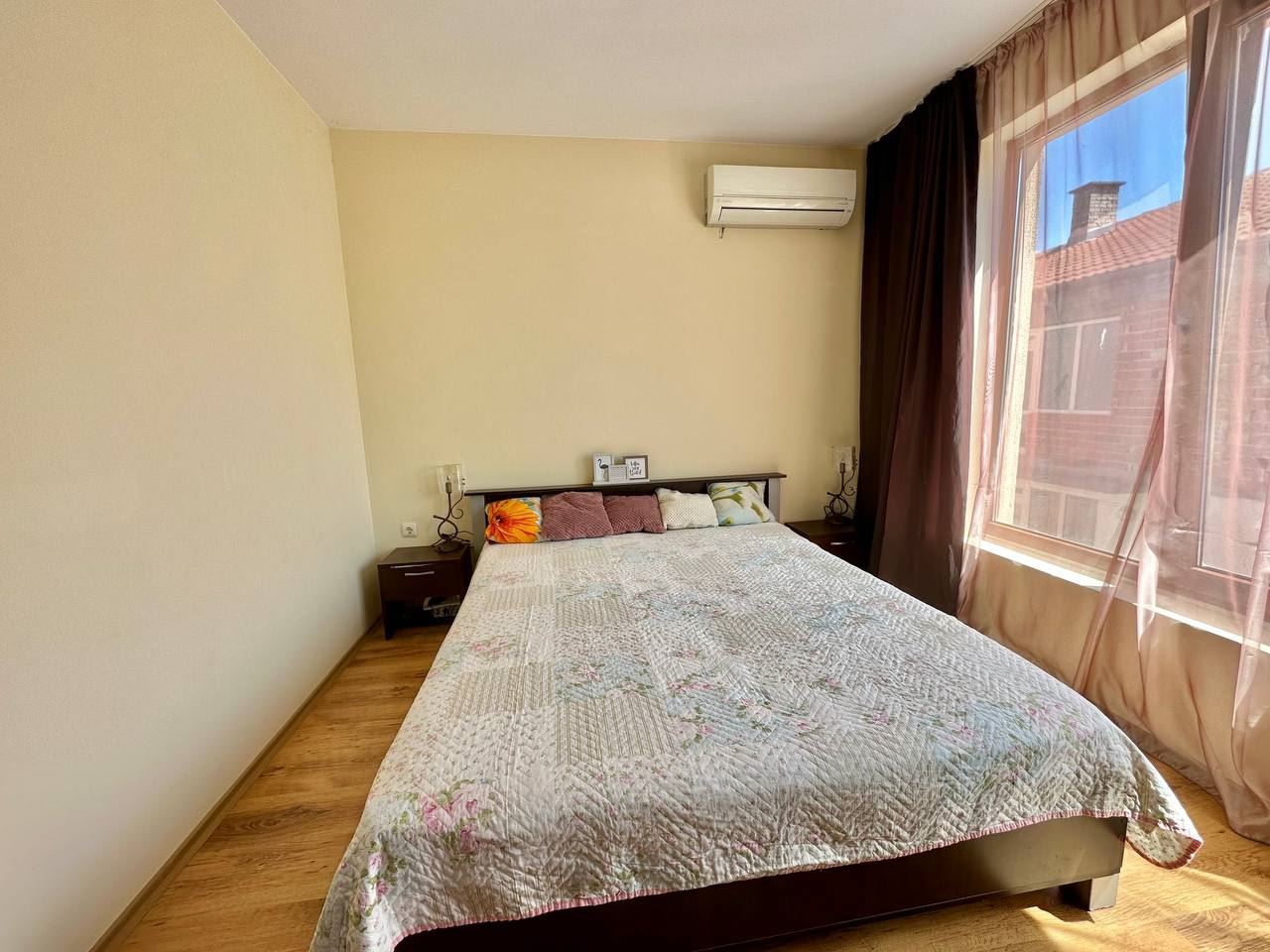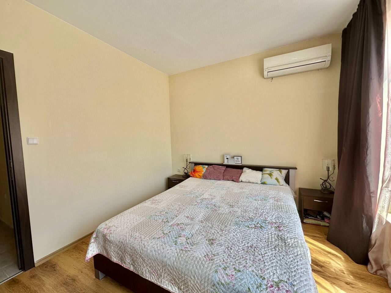 Zwei-Zimmer-Wohnung ohne Wartungsgebühr in einem Mehrfamilienhaus in Ravda. Die Wohnung mit einer Fläche von 59 m² befindet sich im 2. Stock und besteht aus Flur, Wohnzimmer mit Kochnische, Schlafzimmer, Bad mit WC und einem geräumigen Balkon. Die Wohnung steht zum Verkauf voll möbliert und ausgestattet.