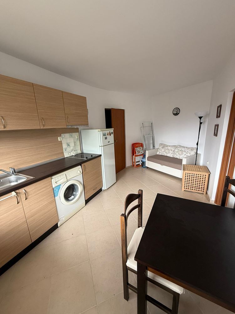 Wir präsentieren Ihnen eine gemütliche Zweizimmerwohnung mit einer Gesamtfläche von 46 m² in einer gepflegten Anlage in Sonnenstrand. Das Gebäude bietet Komfort und bequemen Zugang für Bewohner und Gäste. Die Wohnung verfügt über eine durchdachte Aufteilung: ein geräumiges Wohnzimmer mit Platz für Küchenzeile und Essbereich, ein separates Schlafzimmer, ein Badezimmer und einen Balkon – perfekt für den Morgenkaffee oder abendliche Entspannung. Ideal als Feriendomizil oder zur Vermietung.