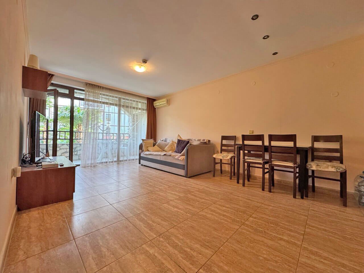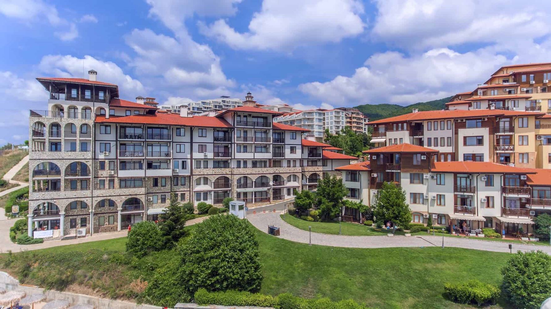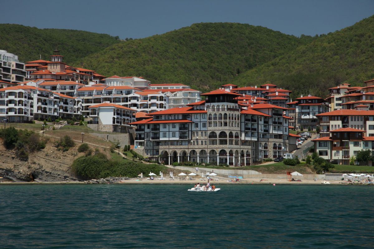 Wir präsentieren Ihnen eine außergewöhnliche Zweizimmerwohnung in erster Meereslinie in Sveti Vlas – einem der begehrtesten Orte an der bulgarischen Schwarzmeerküste, wo das Gebirge die Küste umarmt und ein einzigartiges Mikroklima sowie Ruhe schafft. Die Immobilie befindet sich in einem prestigeträchtigen Komplex mit charakteristischer Architektur – einer eleganten Kombination aus traditionellen und modernen Elementen, die hochwertigen Komfort und eine familienfreundliche Atmosphäre bietet.