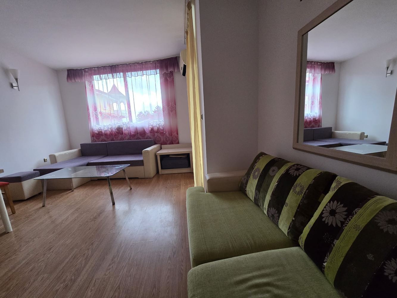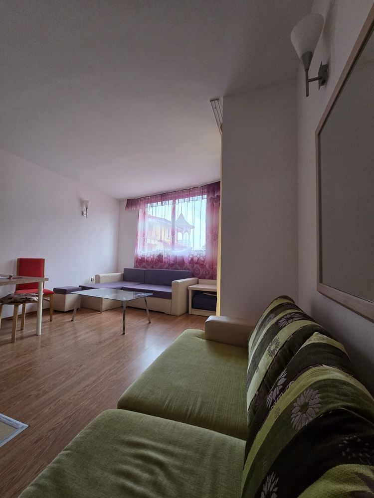 Wir bieten Ihnen eine Zweizimmerwohnung in einem Komplex in Sunny Beach, die 400 m vom Meer entfernt liegt, was sie sowohl für den Eigengebrauch als auch für die Vermietung äußerst geeignet macht. Die Wohnfläche beträgt 60 m² und befindet sich im fünften Stock, mit einer praktischen und funktionalen Aufteilung. Die Wohnung besteht aus einem Eingangsbereich, einem Wohnzimmer mit Küchenzeile, einem Schlafzimmer, einem Badezimmer mit Toilette und einer Terrasse. Die Immobilie wird voll möbliert verkauft, was ein sofortiges Einziehen und komfortables Wohnen ohne zusätzliche Kosten für Möbel und Geräte ermöglicht.